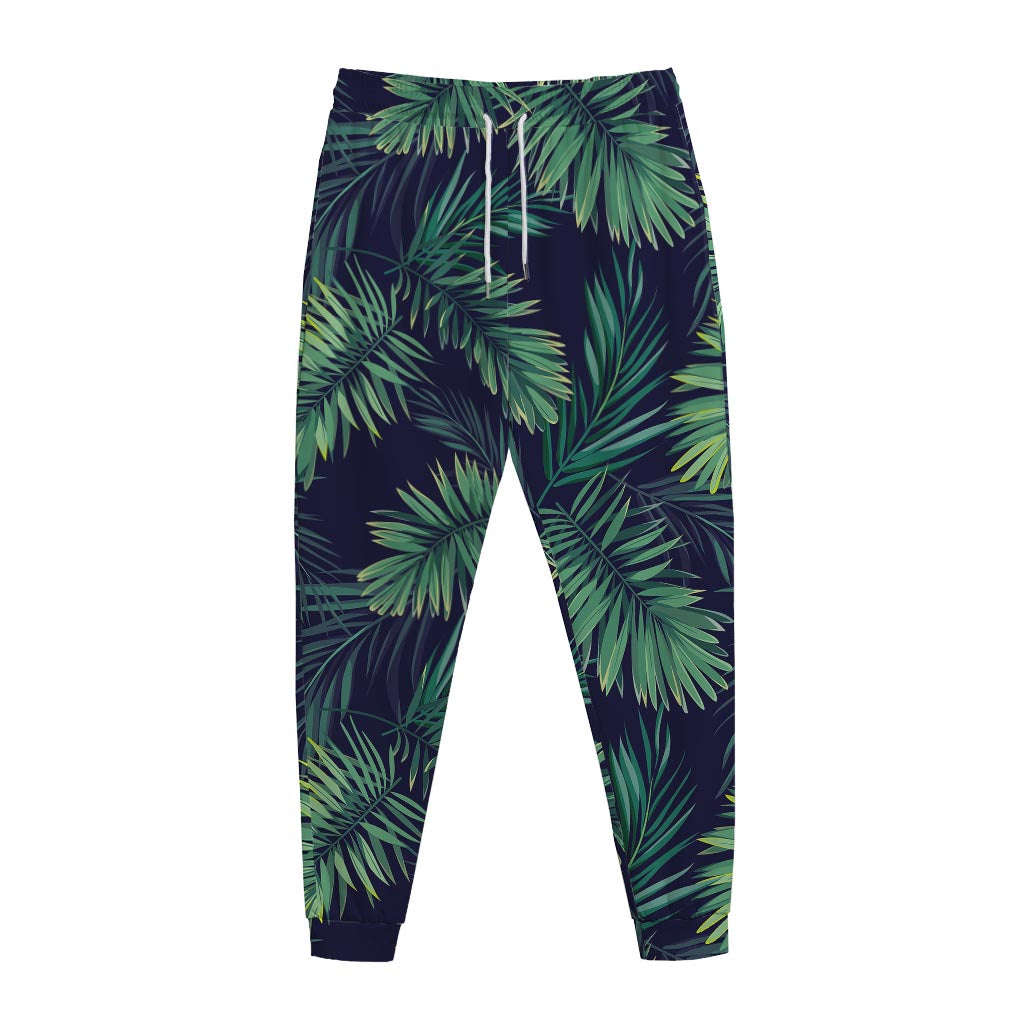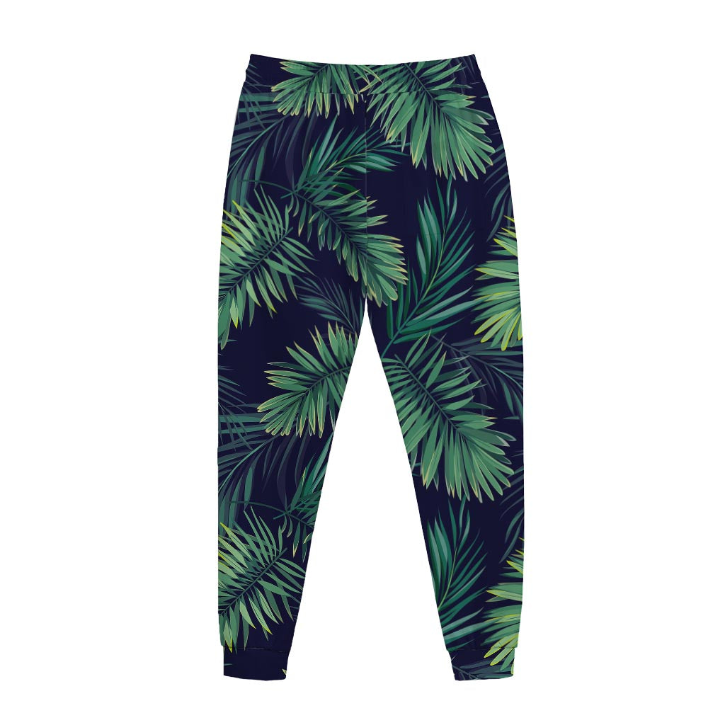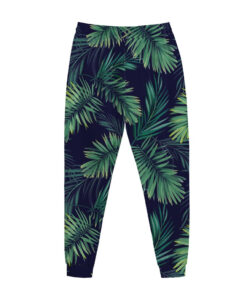 Dark Tropical Palm Leaf Pattern Print Jogger Pants