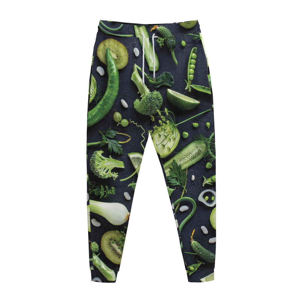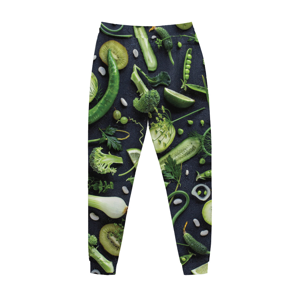 Fresh Green Fruit And Vegetables Print Jogger Pants