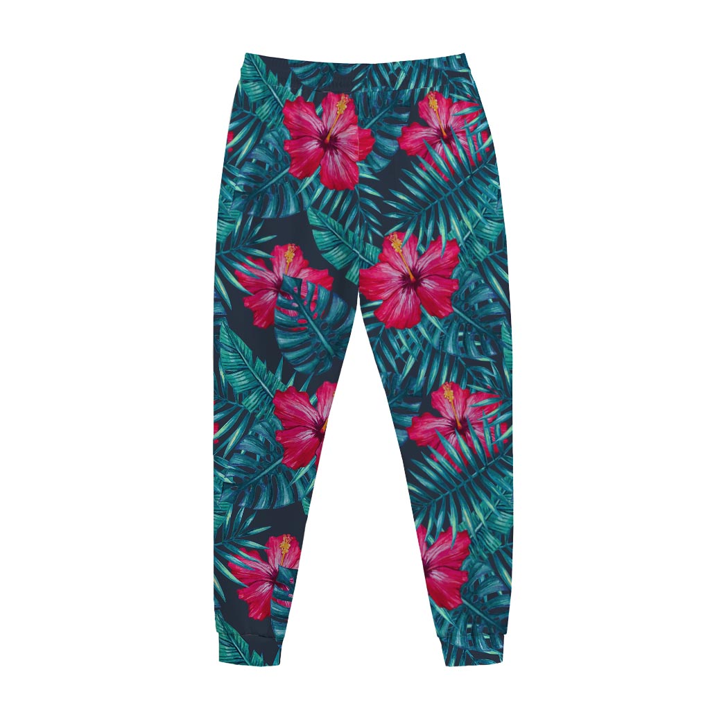 Hot Pink Hibiscus Tropical Pattern Print Jogger Pants