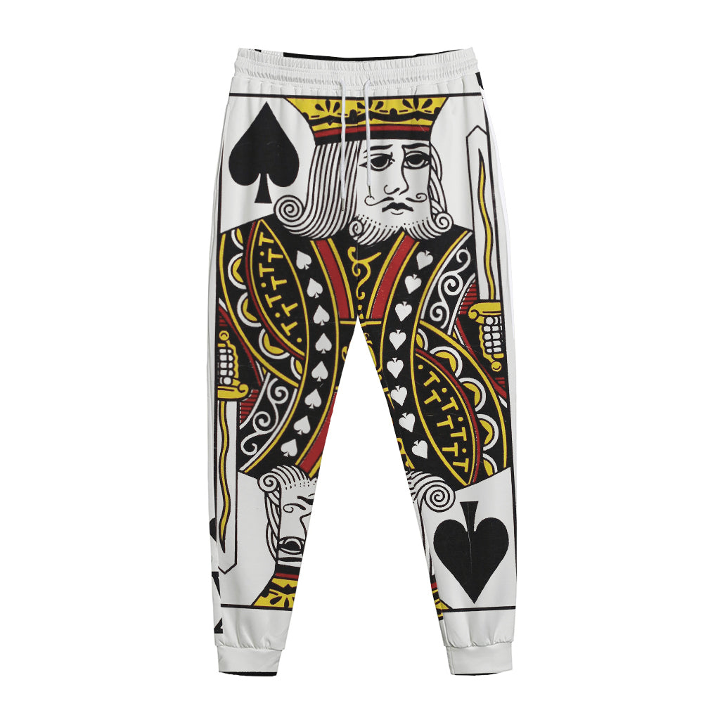 Are you looking for unique jogger pants? Check our King Of Spades Playing Card Print Jogger Pants on GearFrost. Our pants are handcrafted to the highest quality standards and made-to-order for you!