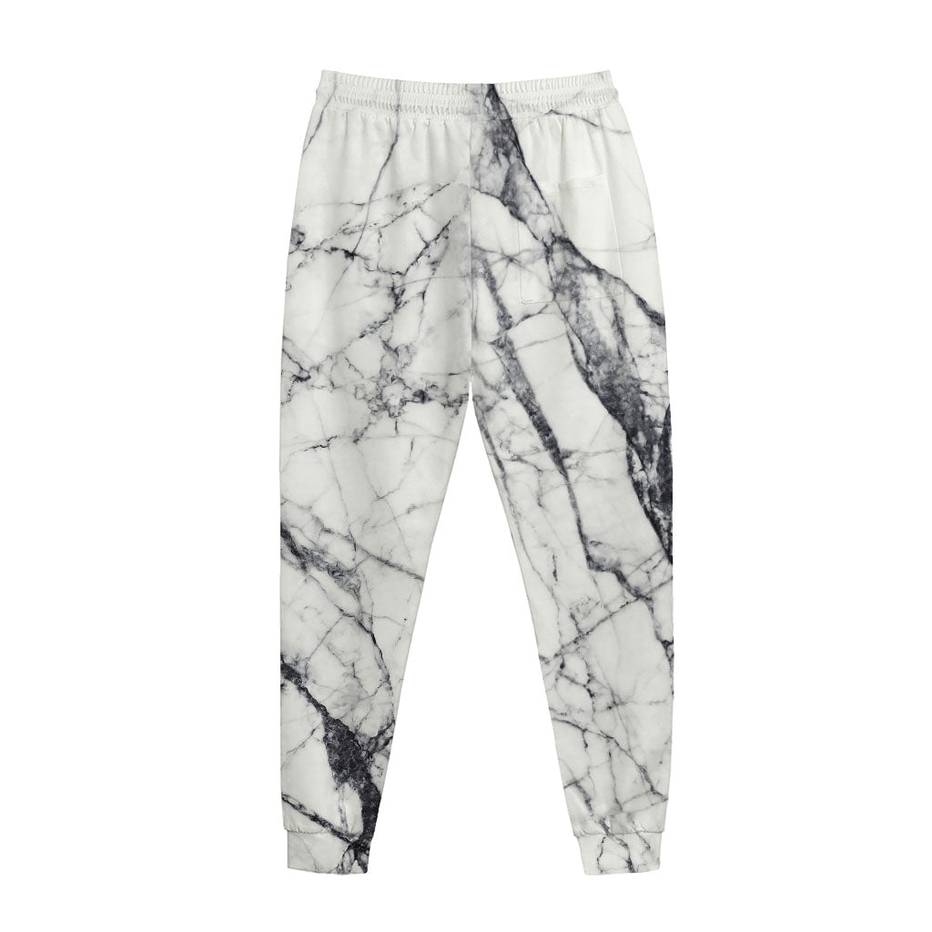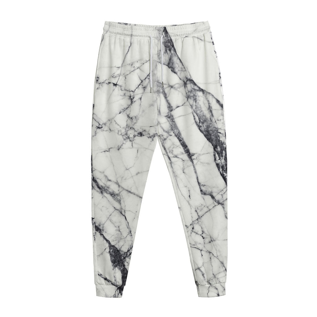 White Gray Scratch Marble Print Jogger Pants