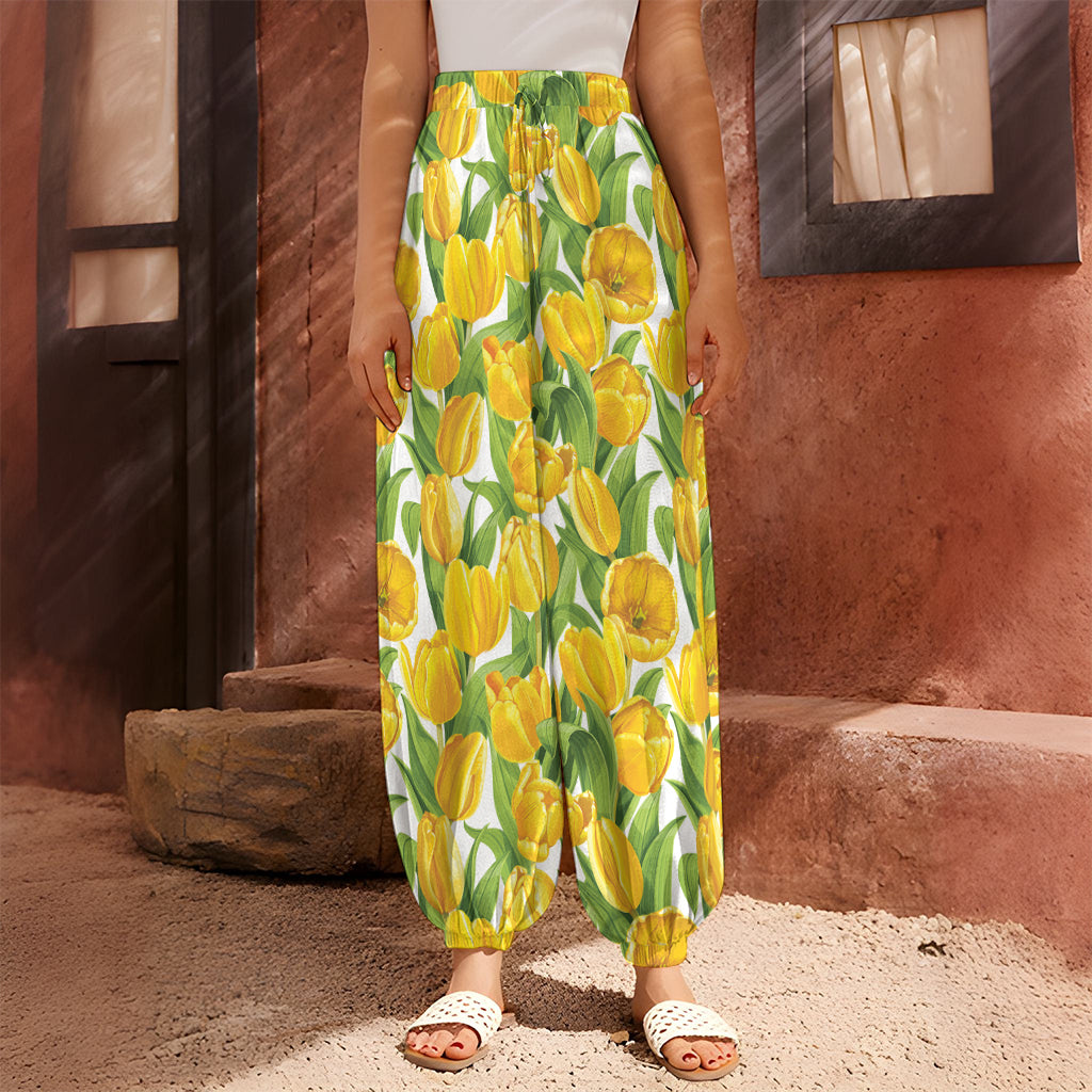 Yellow Spring Tulip Pattern Print Harem Pants