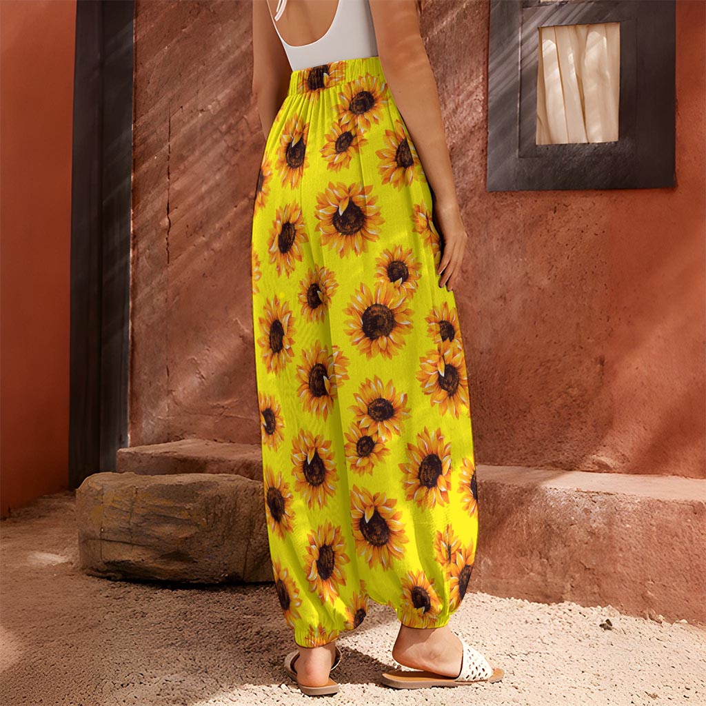 Are you looking for unique harem pants? Check our Yellow Sunflower Pattern Print Harem Pants on GearFrost. Our pants are handcrafted to the highest quality standards and made-to-order for you!