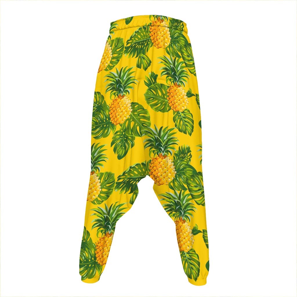 Yellow Tropical Pineapple Pattern Print Hammer Pants