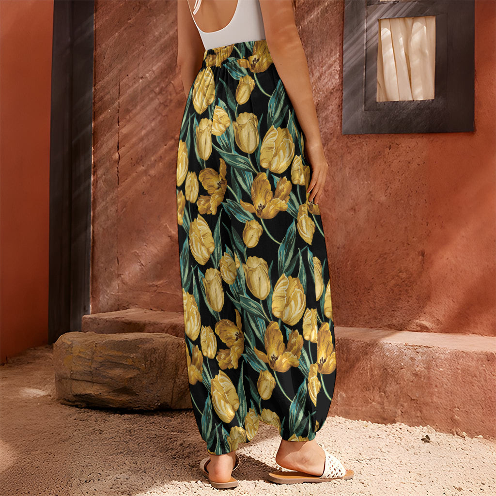 Yellow Tulip Floral Pattern Print Harem Pants