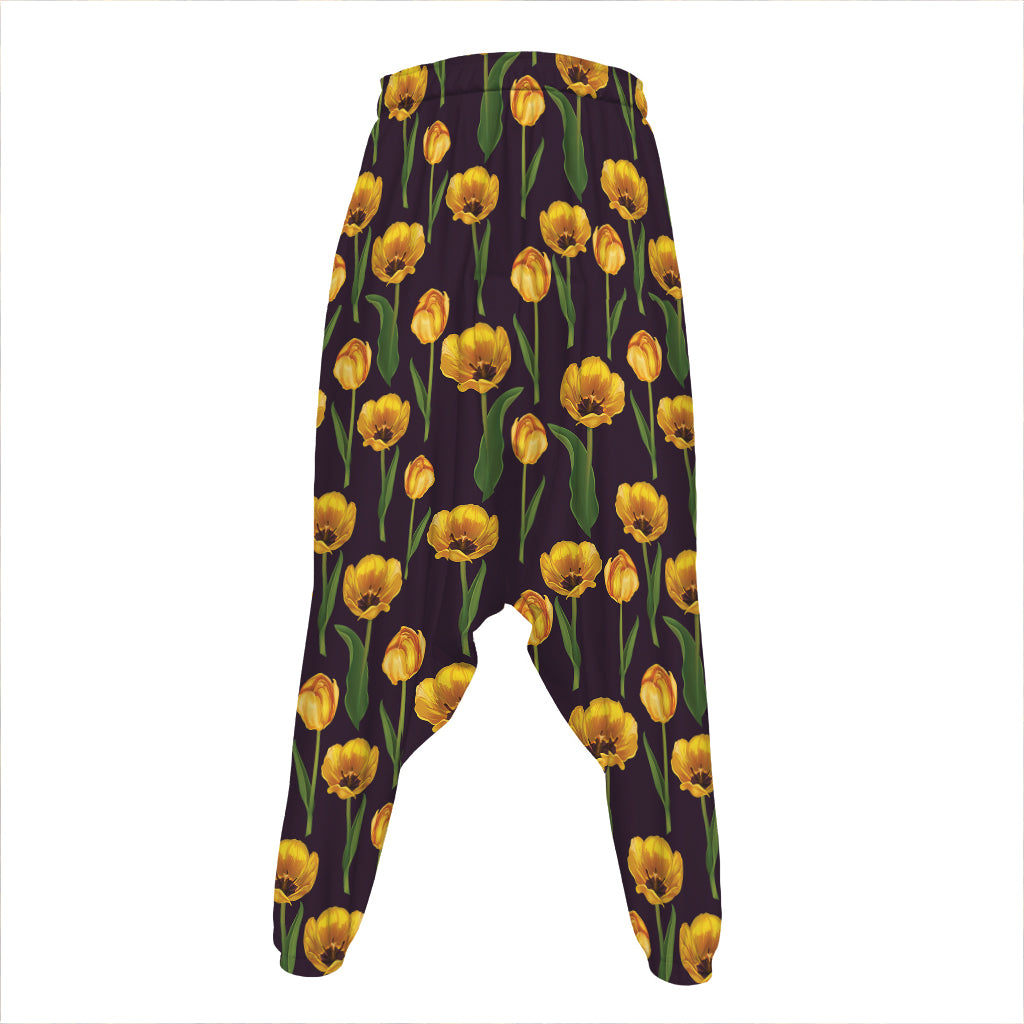 Yellow Tulip Flower Pattern Print Hammer Pants