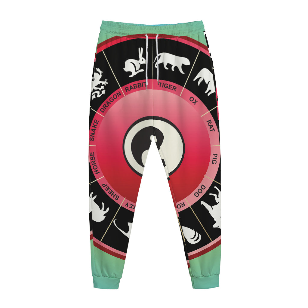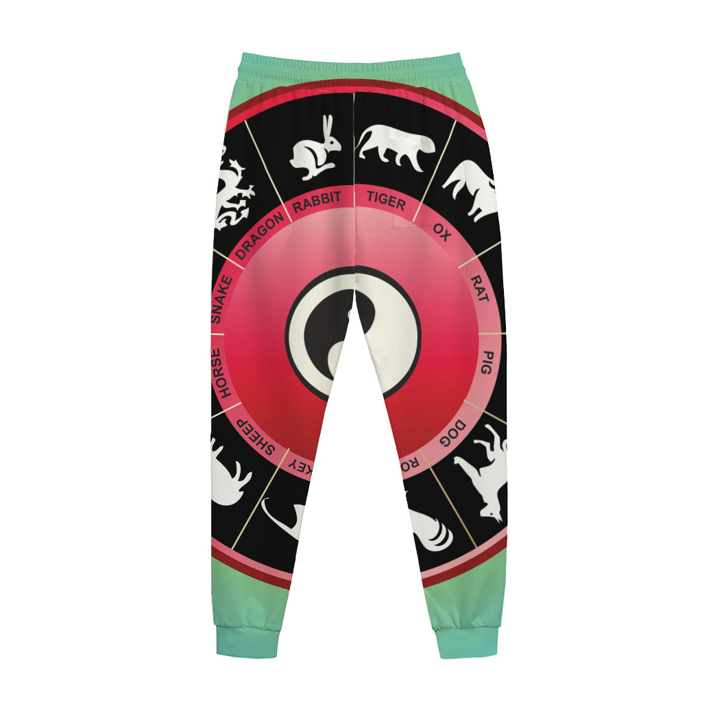 Yin Yang Chinese Zodiac Signs Print Jogger Pants
