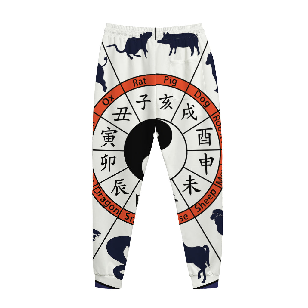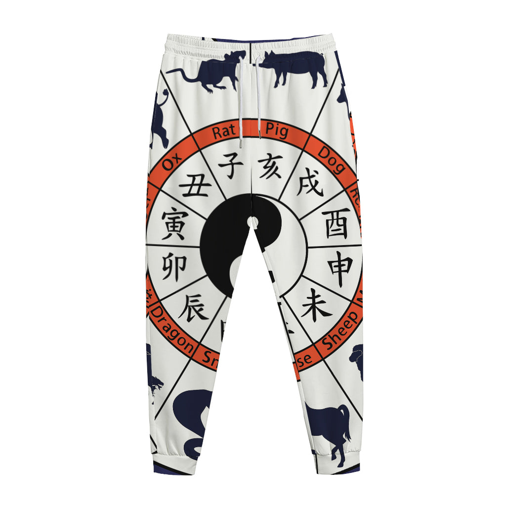 Yin Yang Chinese Zodiac Wheel Print Jogger Pants